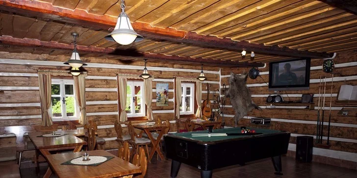 K dispozici tu budete mít biliár, stolní fotbálek a šipky. Budete-li chtít, dívejte se na velkoplošnou TV. Samozřejmostí je připojení k Wi‑Fi.