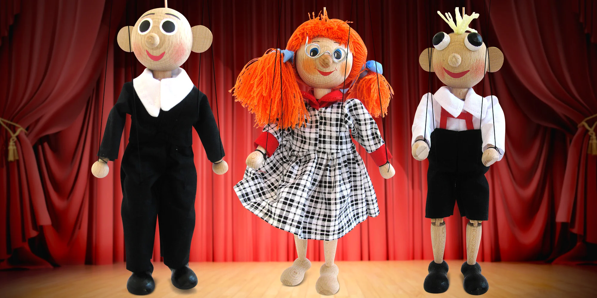 Zabavte své děti a vlastně i sebe prima hrou s loutkami, které mají otáčivé hlavičky a pohyblivé končetiny v kloubech. Vymyslete poučné i lehce střelené příhody, měňte hlasy a vytvářejte zápletky přímo během hry. Kam se na vaše pohádky hrabe televizní tvorba! Hraní podpoří dětskou fantazii a je dost možné, že za chvíli usednete do hlediště vy a děti vám připraví parádní představení.
