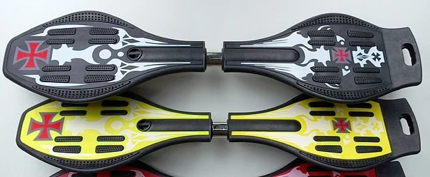 Projet se na této novince určitě stojí za to. Pomocí vlnitého pohybu svého těla docílíte jízdy i do kopce. Waveboard má 2 kolečka otočná o 360 stupňů, přední a zadní díl desky je s protismykovou úpravou a je spojen torzní tyčí. Podvozek je kvalitní a zesílený.