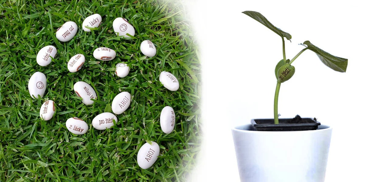 Originální a jedinečný způsob potěší malé i velké. Nápis, který je na suché fazoli, totiž bude viditelný i na samotné rostlince, kterou si sami vypěstujete.
