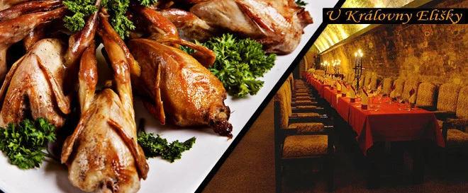 Poslechněte si, jak křepelka zpívá, než vám na talíři rozehraje fascinující symfonii chutí a vůní. Ve vinárně U Královny Elišky si s dalším gurmánem přímo královsky pochutnáte – před každým z vás přistane jedna celá nadívaná křepelka.