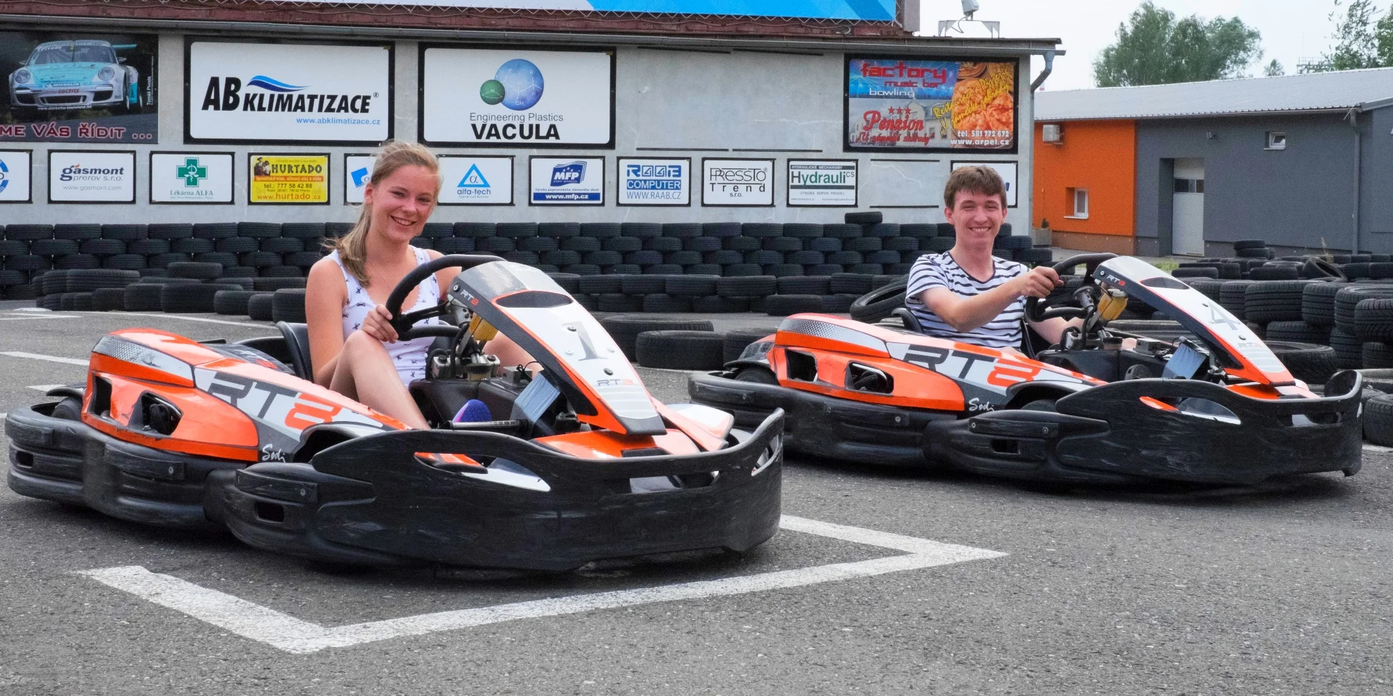 Po jízdě je možné své dojmy probrat v dobře zásobeném sportbaru s parádním výhledem na další borce, kteří právě frčí po dráze. Provozovatel má připravené i motokáry pro děti od 3 let. Zazávodit si tady proto může třeba celá rodina.