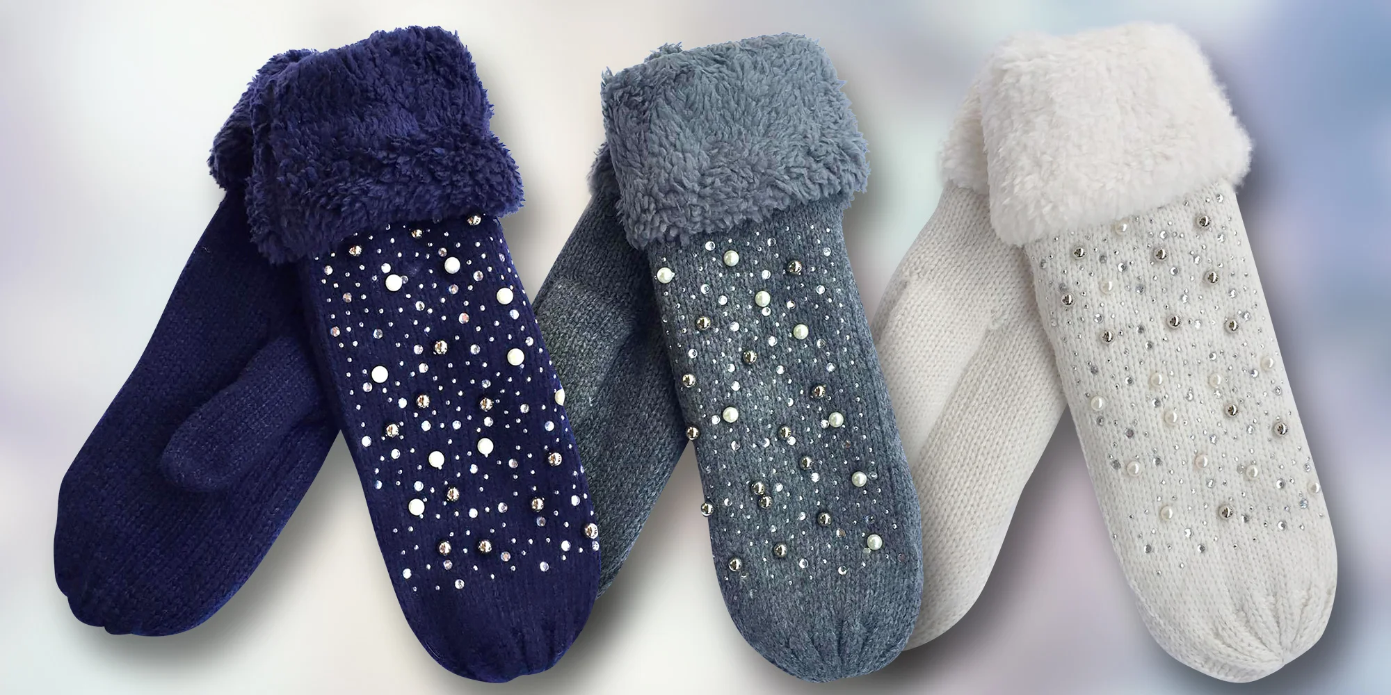 Teplé rukavice do zimy: dámské vlněné palčáky zdobené korálky