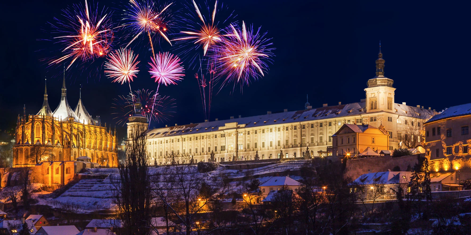Vychutnáte si také silvestrovskou večeři s předkrmem, polévkou, hlavním chodem a čokoládovým dortem na závěr. Nebude chybět ani lahev vína z kutnohorských vinných sklepů