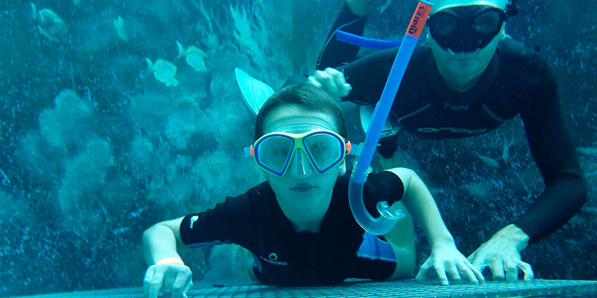 Objevte úplně nové možnosti pohybu pod vodní hladinou. Blbnutí se skútrem nebo seabikem v potápěčské jámě patří mezi zážitky, kterým nelze nepropadnout.
