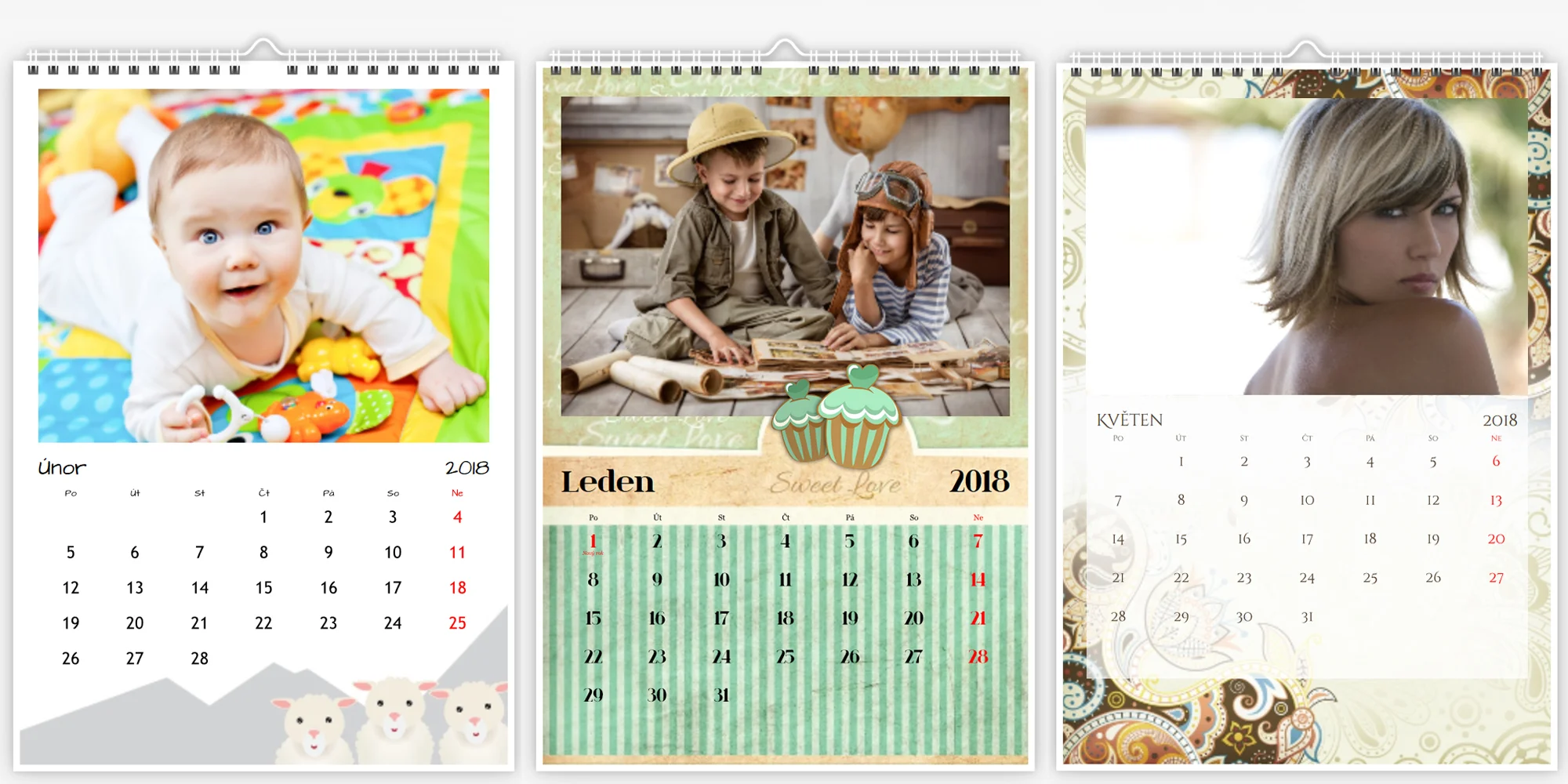 Díky rozmanitému výběru šablon si kalendář vytvoříte podle svého přání. Nejen že si vyberete vlastní fotografie a komentáře, ale můžete si také v kalendáriu označit důležitá data, nebo zvolit vlastní počáteční měsíc.