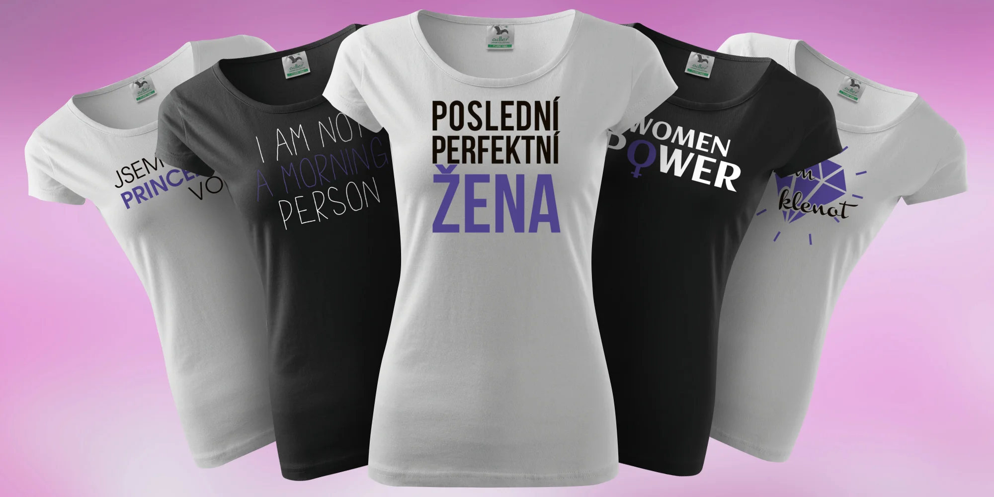 Motivy na dámských tričkách kladou důraz na ženskost, ale i soběstačnost a suverenitu ženského ducha.