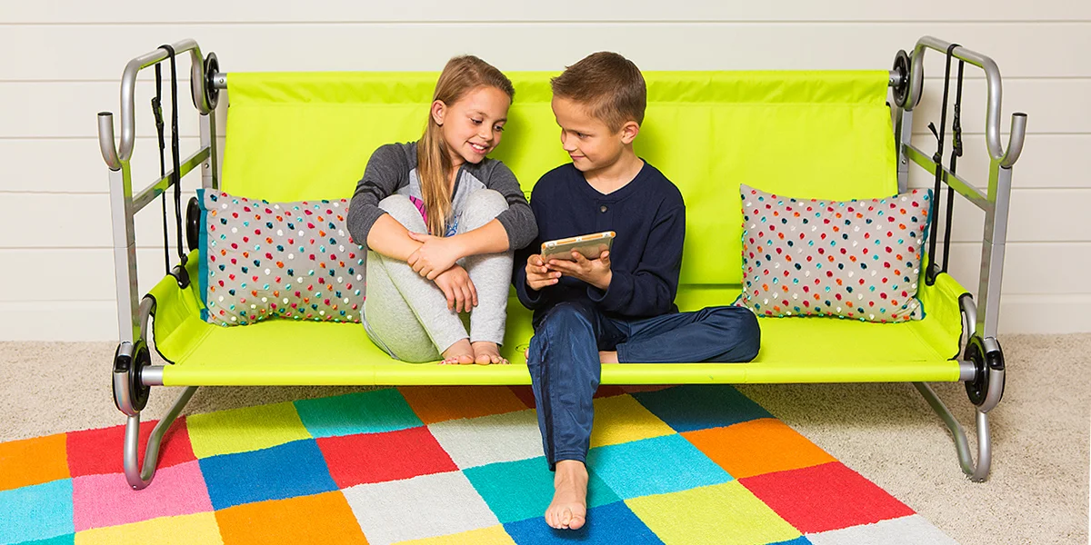 Připravte svým dětem královské lože, ať jste kdekoli. Už žádné spaní na tvrdém gauči u babičky nebo na karimatce v kempu. Rozložte jim patrovou skládací postel Kid-O-Bunk. Můžete z ní udělat palandu, dvě samostatné postele nebo sedačku. Hodit se bude i doma, až u vás budou přespávat kamarádi.