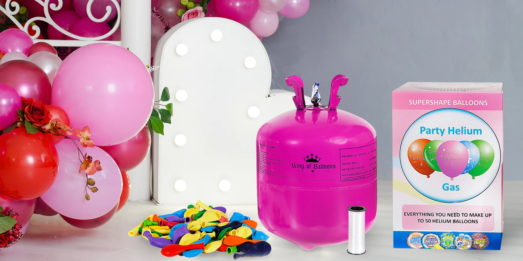 Za voucher dostanete jednorázovou bombu helia, pomocí které nafouknete 30 nebo 50 balónků rychle a jednoduše. Láhev není znovu plnitelná a je nevratná, slouží na jedno použití, avšak balení je recyklovatelné.