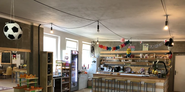 V nabídce jsou vouchery se vstupným pro jedno či dvě děti. Zatímco si dítka budou hrát, vychutnáte si svoji chvilku pohody u voňavé kávy a dortíku dle výběru z nabídky. A pokud rády mlsají i vaše děti, kupte jim vlastní voucher na nápoj a sladkost, budou se oblizovat! Pro malé hosty tu mají speciální dětské židličky a stolečky, samozřejmostí jsou přebalovací pulty.