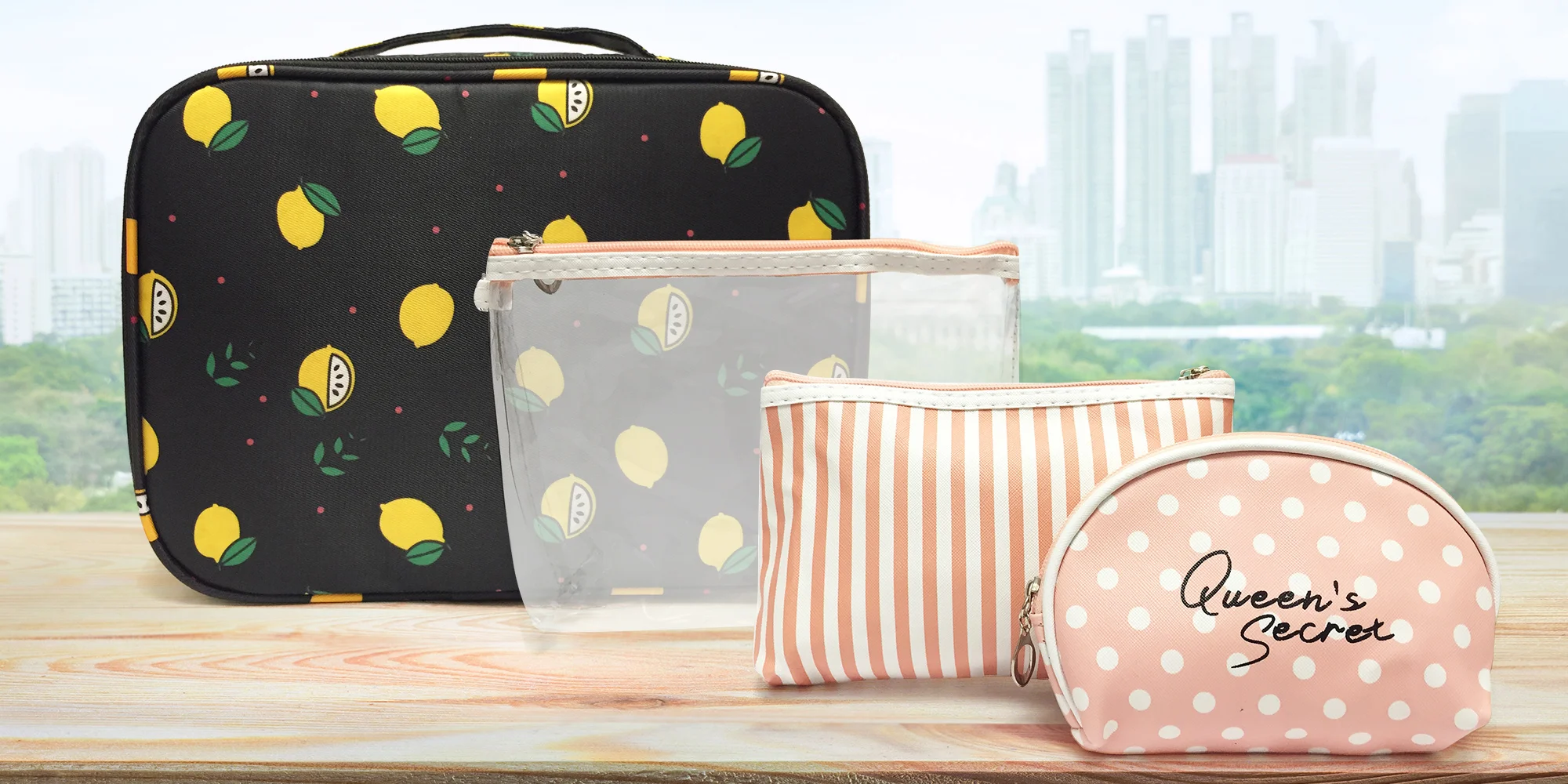 Pořiďte si parádní sadu kosmetických taštiček, díky kterým u sebe pořád budete mít to nejdůležitější. Taštičky jsou rovnou tři, a tak nemusíte mít strach, že s sebou nepoberete všechno, co potřebujete. Make-up, parfém a deset rtěnek, vše se pohodlně vejde. Taštičky využijete na cestách, doma, ale klidně i jako pořadník do kabelky – a vždy budete vědět, co kde máte.