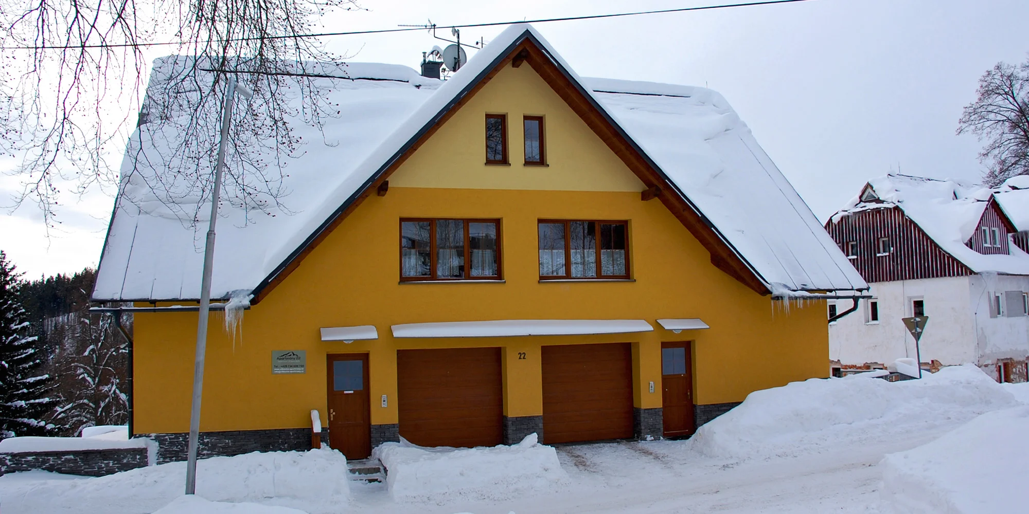 - Apartmány jsou přímo nad sjezdovkou u hlavní silnice /parkoviště, pohodlně si tak můžete nazout lyžáky a dojet si přímo na vlek skiareálu Aldrov.