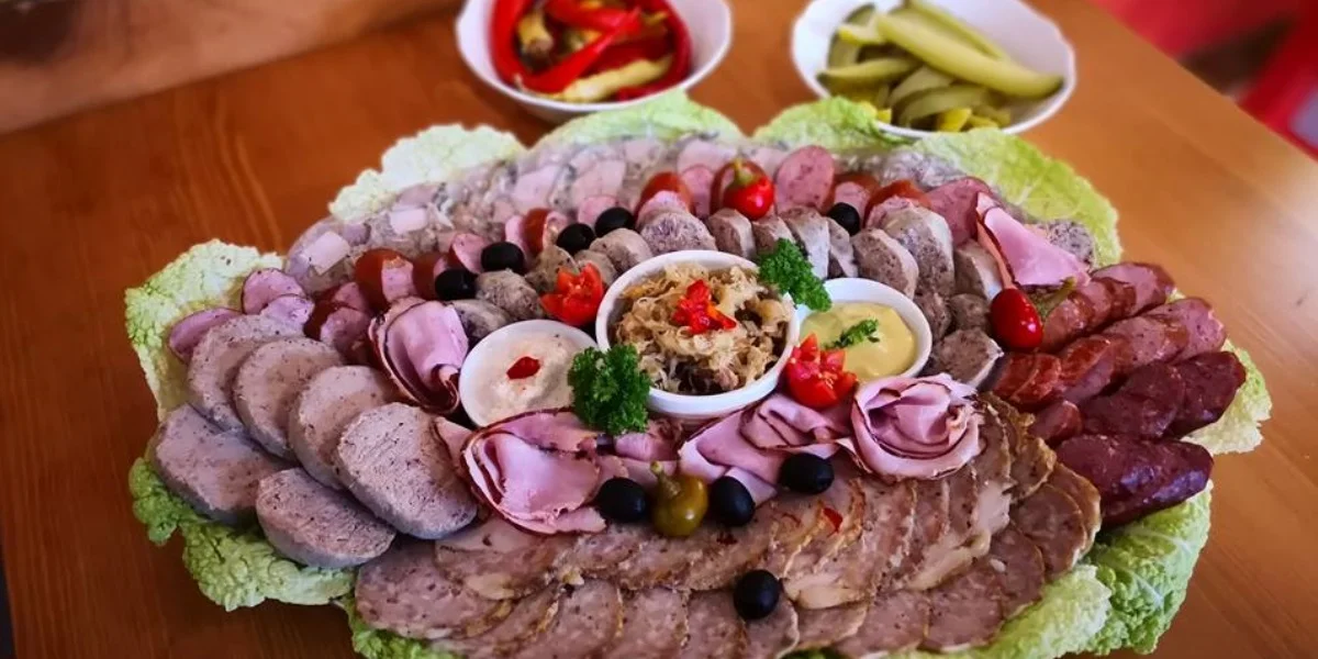 Na talíři se před vámi objeví jitrnice, šunková klobása, bůčková roláda, uzená kýta, svíčková sekaná, paštika i tlačenka a samozřejmě také kozí rohy, okurky, křen, hořčice a pečivo. Dobroty můžete zapít Ryzákem 11°, Klusáčkem 13° a různými sezónními speciály. Všechny piva pochází přímo z Pivovaru Koníček.