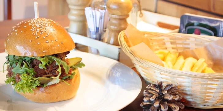 Vyrazte na parádně naložený burger do restaurace U Příborů. Jednoho nebo dva labužníky tu čeká kousek s trhanou BBQ krkovicí a meruňkovou marmeládou. A co jiného k takové chuťové bombě než nálož zlatavých hranolků? Každý dostanete rovnou 100 g bramborové parády.