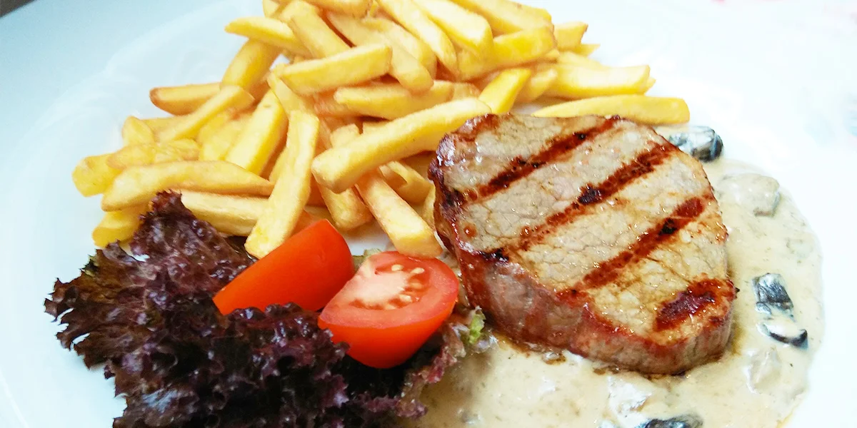 - Omáčka dle výběru: pepřová omáčka nebo omáčka z pravých hřibů