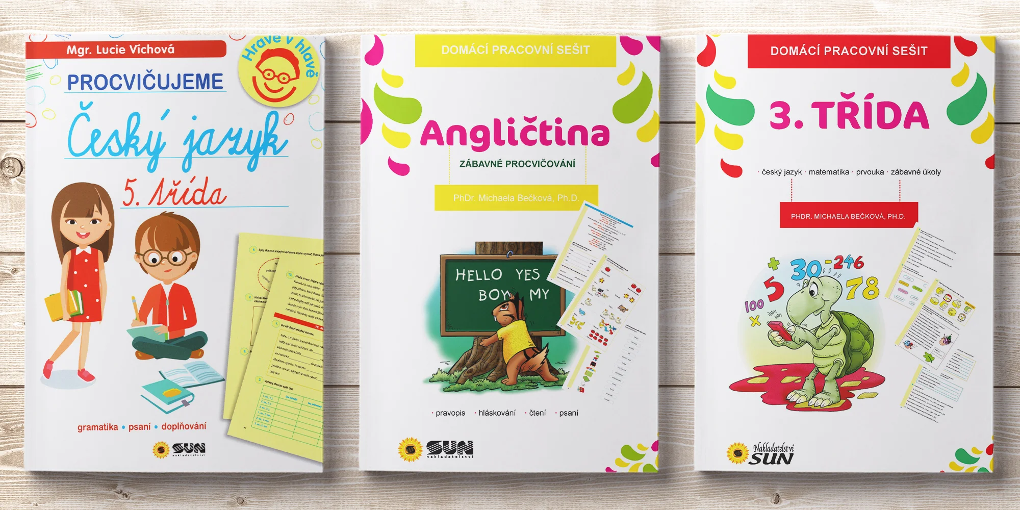 České nakladatelství SUN přichystalo 9 variant pracovních sešitů pro žáky 1. stupně, díky nimž si budou moci zopakovat a procvičit probírané učivo z českého jazyka, matematiky, angličtiny a prvouky (případně vlastivědy a přírodopisu). To vše hravou formou, takže vyplňování úkolů pro ně nebude nutné zlo, ale příjemná zábava.