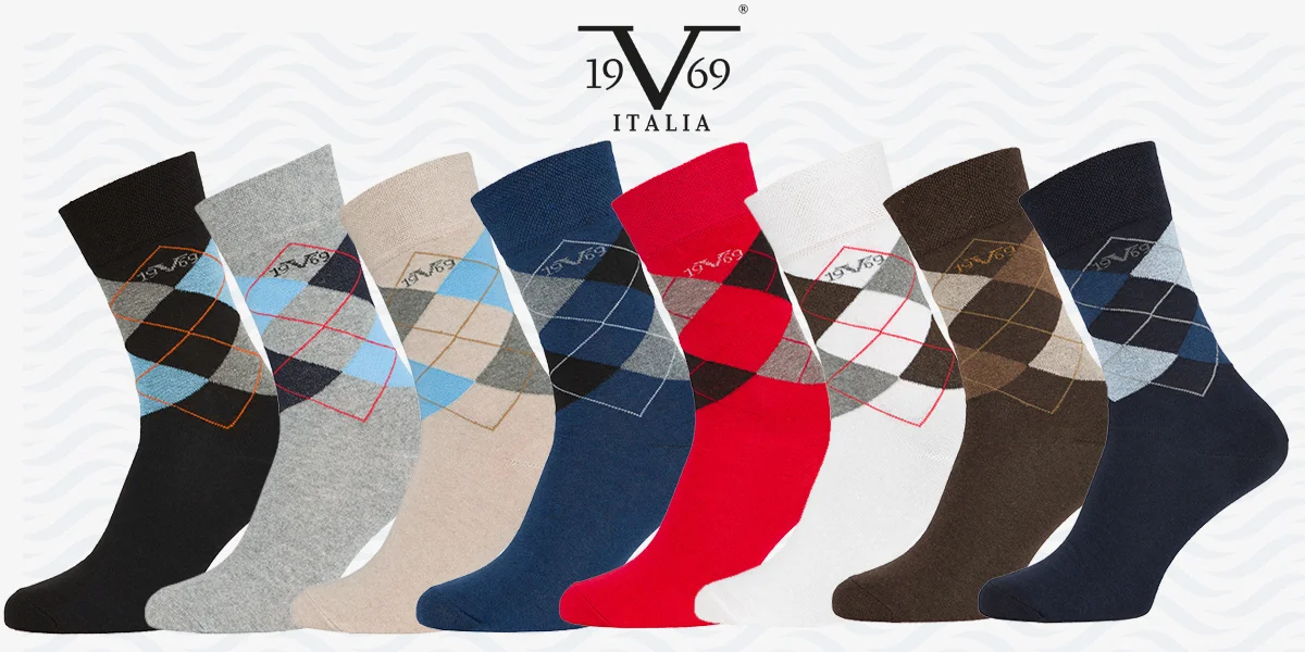 Balení 5 párů business ponožek značky 19V69 od Versace Abbigliamento Sportivo Srl Milano Italia udělá radost každému muži co má rád luxus a styl. Jejich velmi kvalitní zpracování a stylový vzor v různých barevných kombinacích s logem 19V69 uprostřed si opravdu zamiluje každý.