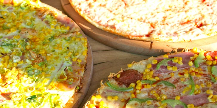 - Pupíkův kuřecí nářez – tomato, eidam, šunka, dvojitá porce kuřecího masa, kukuřice