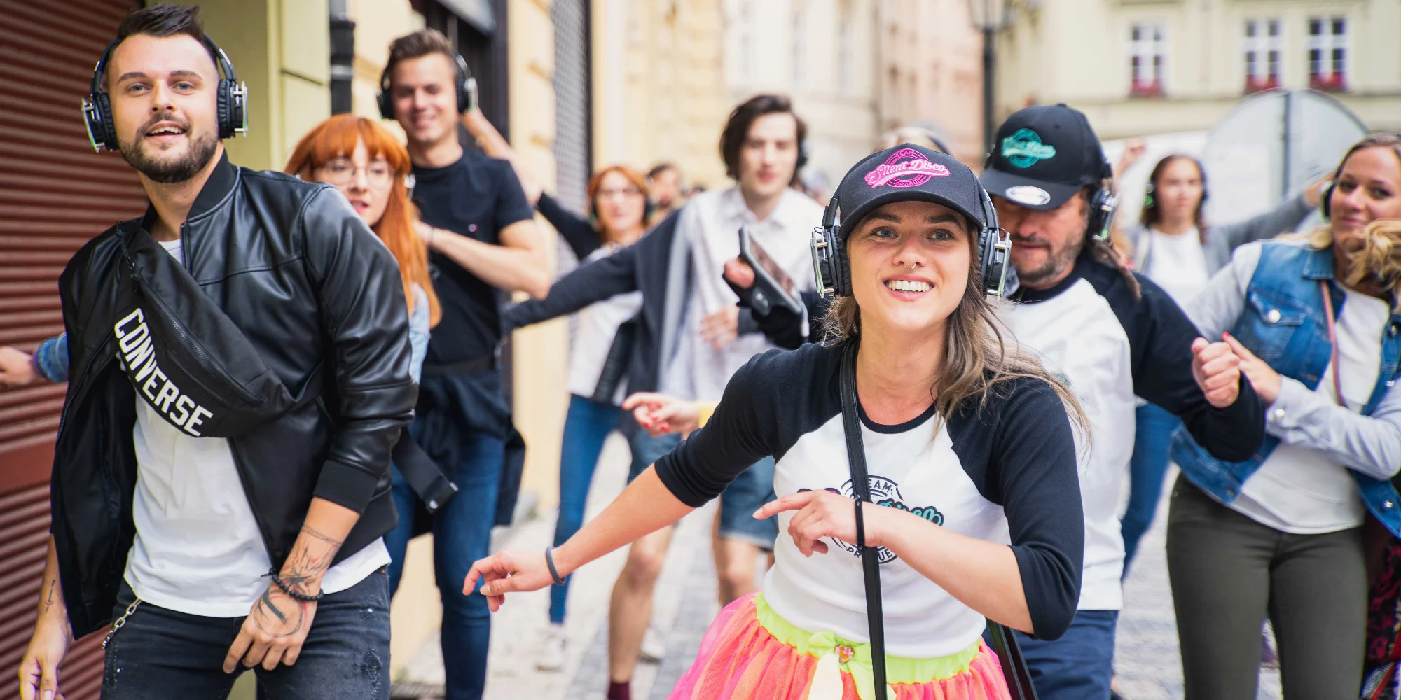 Už jste někdy tančili na ticho? Přesně tak totiž budete připadat kolemjdoucím turistům. Ve skutečnosti vám ale do sluchátek budou hrát ty největší hudební hity současných i minulých let, které roztančí vaše tělo! Silent Disco Tour je totiž tichá diskotéka – nasadíte si sluchátka, sledujete průvodce a ve svižném rytmu si užijete nevšední procházku krásnými ulicemi staré Prahy.