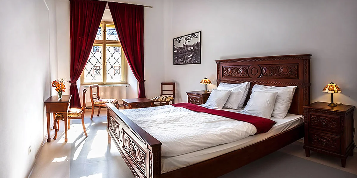 Zabydlíte se v krásném pokoji Superior, ze kterého dýchá klid a mír staré klášterní budovy. Zároveň však budete mít veškeré pohodlí a díky stylovému nábytku si budete připadat jako v jiném světě.