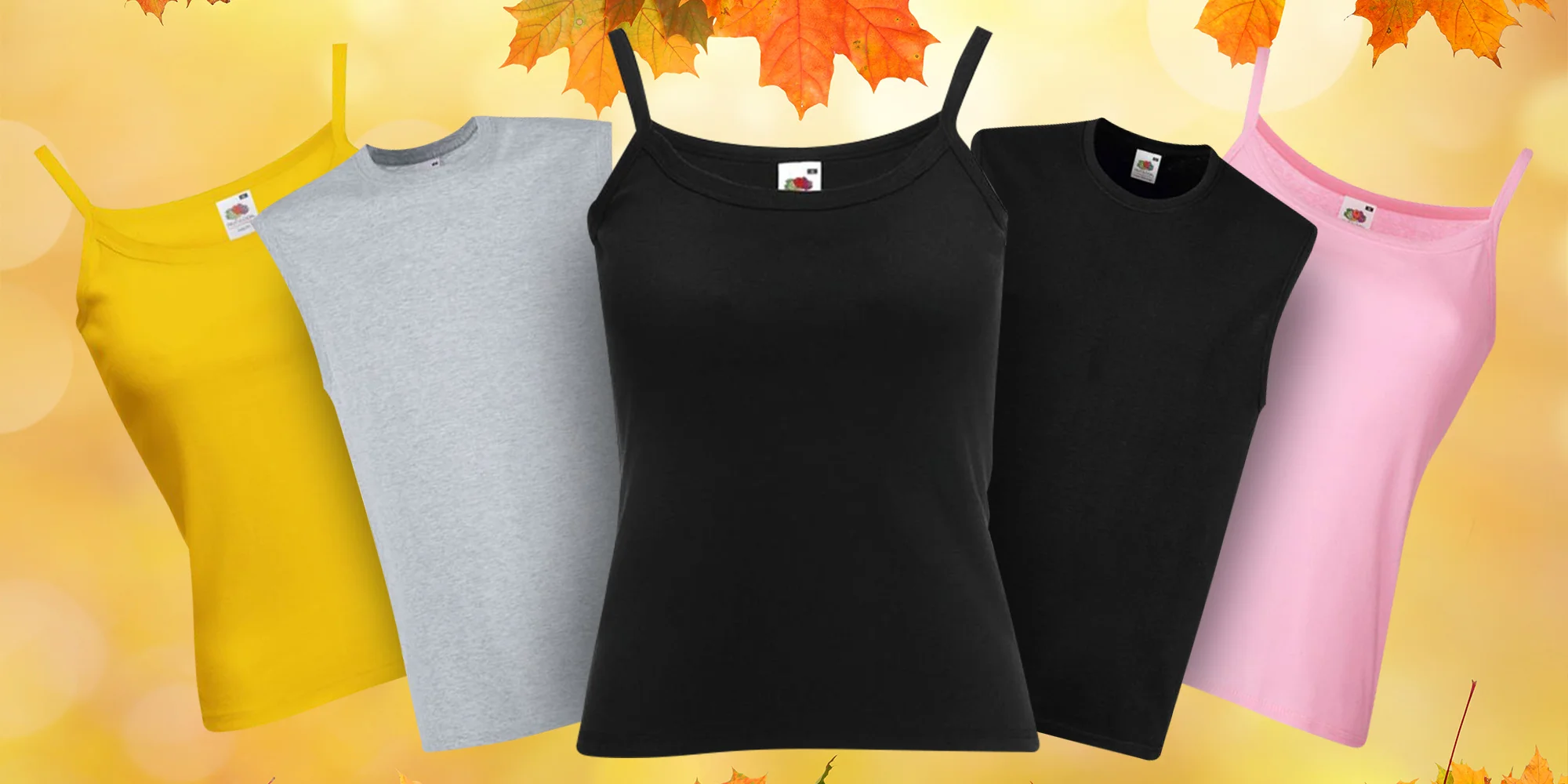 Podzimní počasí si žádá to správné oblečení, které je lehké, vzdušné a zároveň skvěle vypadá. Dámská i pánská tílka Fruit of the Loom ze 100% bavlny můžete kombinovat s různými letními outfity. Dámská tílka mají módní špagetová ramínka a pánská pak můžete vybírat ze dvou barev.