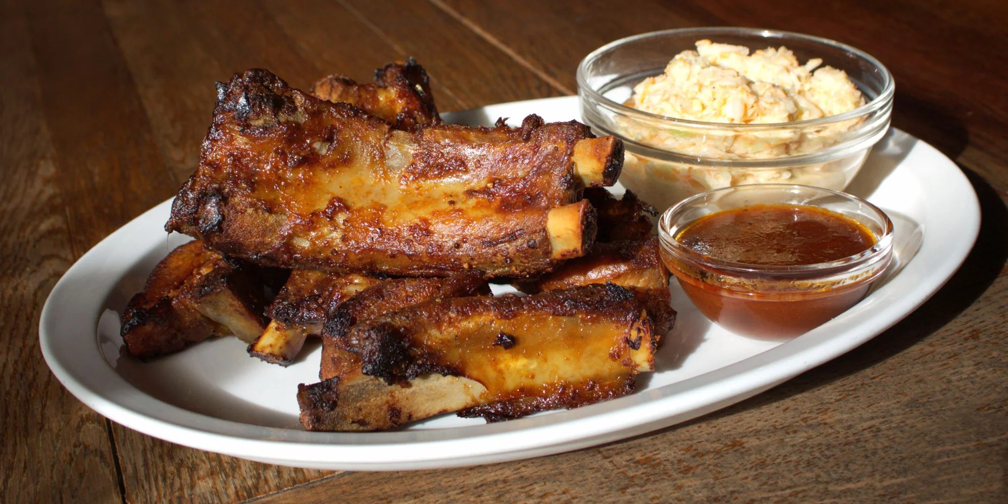 Vybrat si můžete z různých variant. Dejte si 500 g žeber podávaných s coleslaw salátkem nebo 500 g bůčku, který je šťavnatý i křupavý zároveň díky jeho grilování po rozkrájení. Ve druhé variantě si pak můžete dopřát obojí.