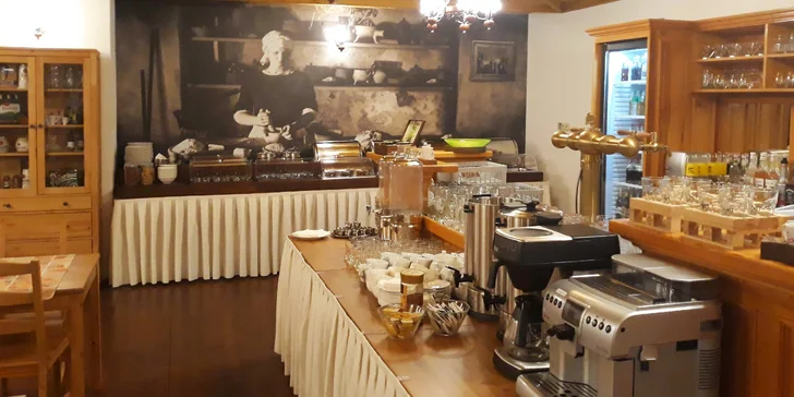 Snídaně se podávají formou bufetu, večeře jsou v závislosti na obsazenosti hotelu servírované nebo rautové. Vaří tu českou a regionální kuchyni a suroviny vybírají především od místních dodavatelů. Na stole vám zavoní také chléb, houstičky, buchty a další dobroty.