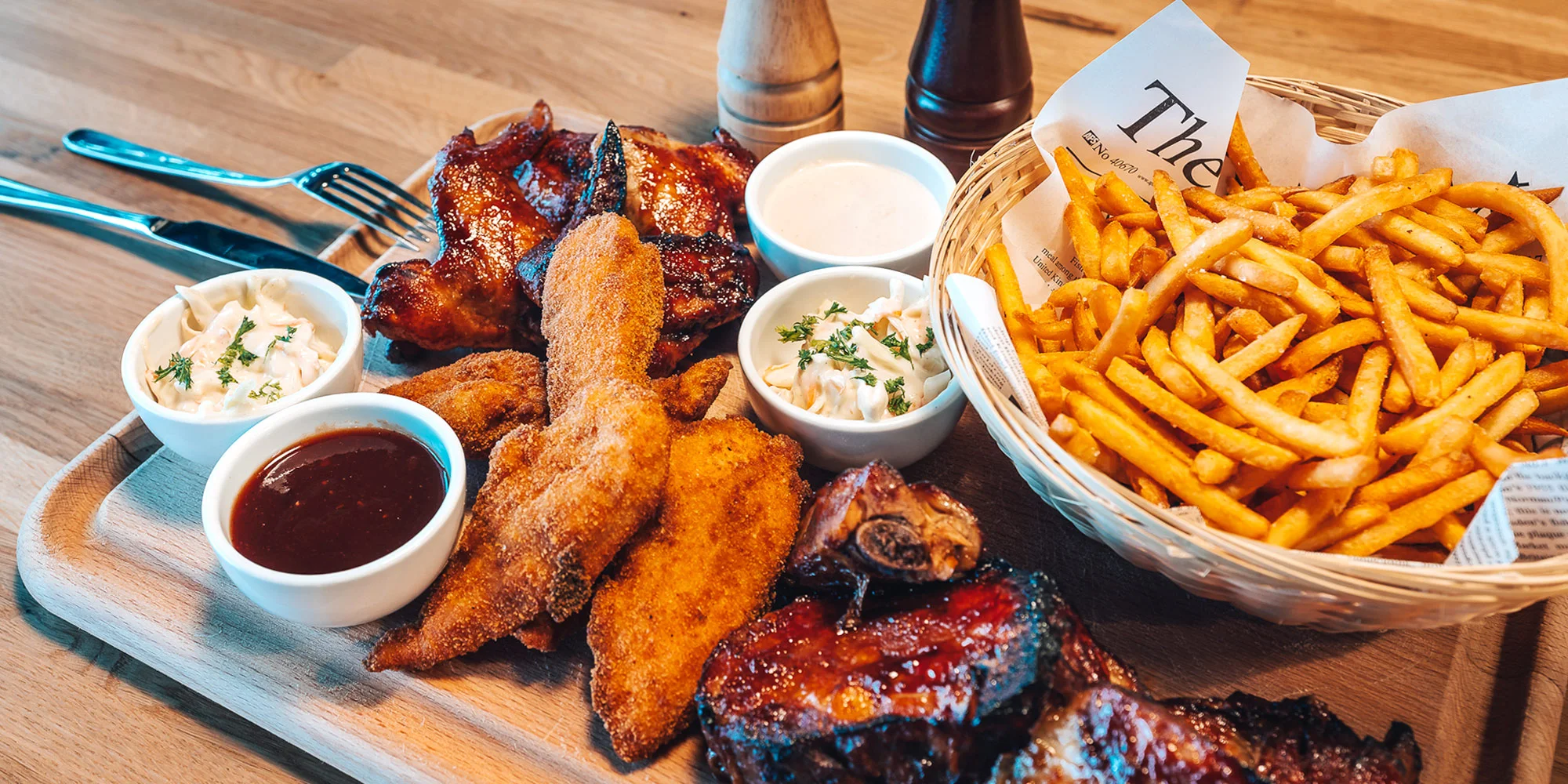 Objednat si masové prkno v olomoucké pivnici Queen ale znamená především to, že budete mít žaludek rázem dokonale plný. Jen počítejte: 400 g vepřových žeber + 400 g kuřecích křídel + 200 g kuřecích stripsů se rovná kolik? Přece jedna velká hostina. A to nám v té rovnici chybí ještě 400 g hranolků a 100 g salátu coleslaw.