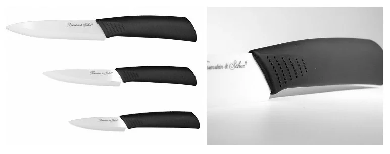 Keramické nože mají bílé ostří nožů, ergonomicky tvarovanou a protiskluzovou rukojeť. Jsou vhodné i jako dárek. Sada nožů je zabalena do krásného dárkového balení. V sadě naleznete nůž na okrajování, nůž na ovoce a zeleninu a univerzální kuchařský keramický nůž.