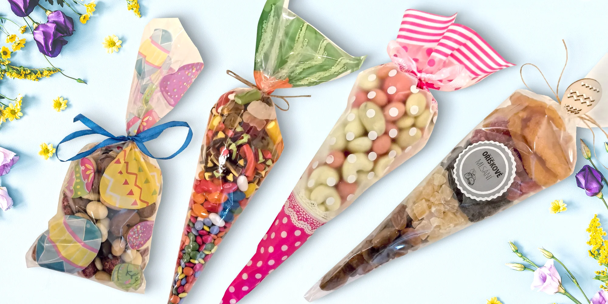 Připravte se na Velikonoce a na rozveselené dětičky, které budou chtít sladkou nadílku. Velikonoční kornouty a balíčky od Oříškového mlsání jsou vyrobené v ČR a jsou plné ořechů, bonbonů a ovoce v čokoládě. Kornouty a balíčky mají od 220 do 340 g a z jejich náplně budou nadšení malí i velcí mlsouni – najdete v nich např. makadamové ořechy, želé fazolky, lentilky nebo třeba meruňky v jahodovém jogurtu či mandle v mléčné čokoládě.