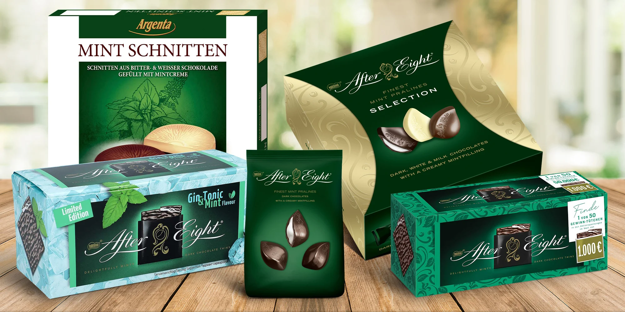 Oslaďte si život vynikajícími čokoládkami s mátou! V nabídce najdete varianty známých After Eight (klasické, pralinky, ale i limitovanou edici s tonicem), mátové řezy Argenta v hořké a bílé čokoládě, královsky dobré Royal Mints a výběr mátových delikates v hořké čokoládě Bendicks. Ať už ale sáhnete po jakékoliv variantě, spojení čokolády a mátové příchutě si zkrátka zamilujete!