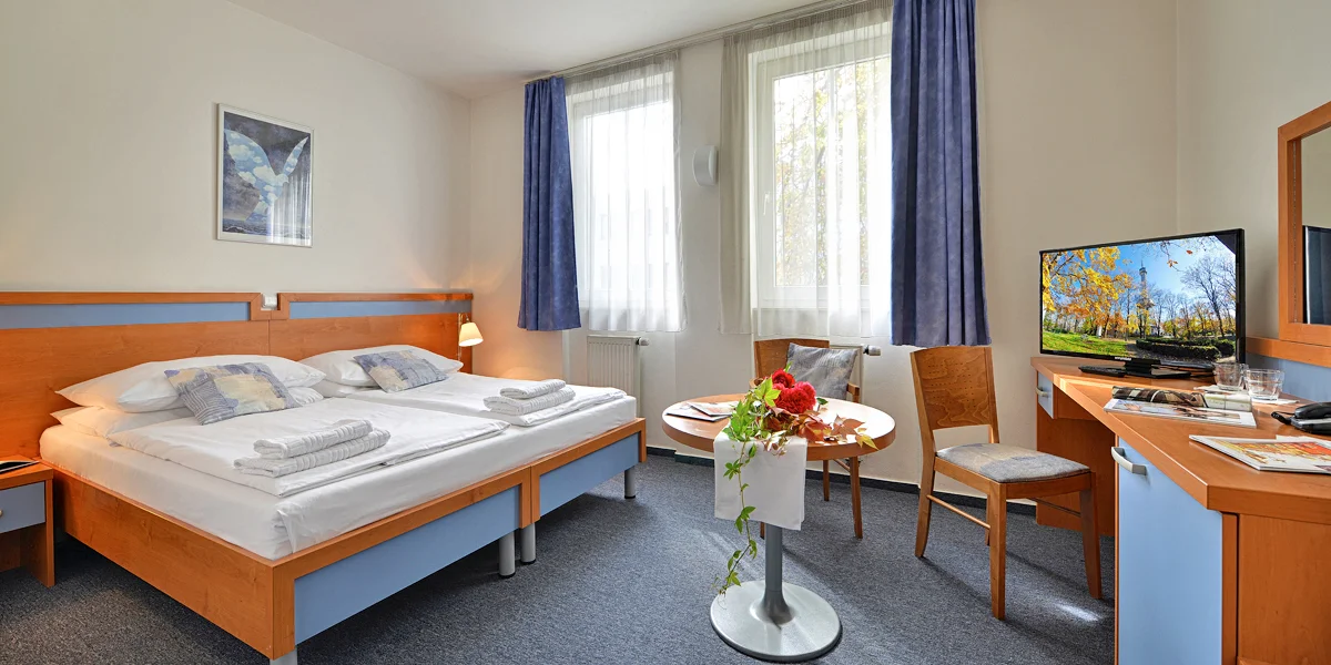 Hotel nabízí ubytování v celkem 77 pokojích, celková kapacita je 220 lůžek. Samozřejmostí je vlastní koupelna se sprchou nebo vanou, v pohodě se tu připojíte k Wi‑Fi a po předchozí domluvě s sebou můžete vzít i své domácí mazlíčky. V pokoji budete mít nachystané župany a pantofle a při příjezdu také překvapení v podobě ovoce a čokolády.