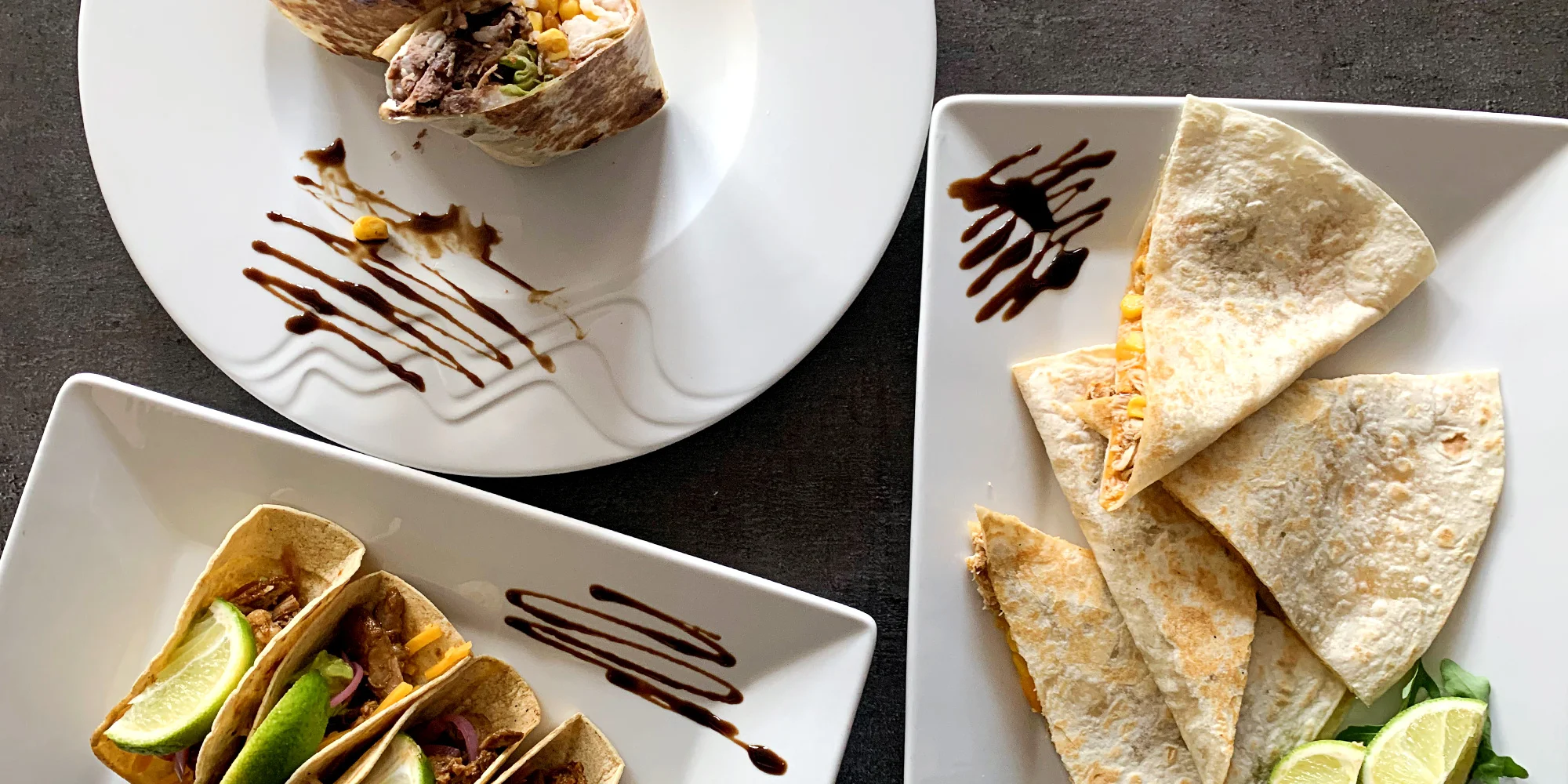 - Quesadilla (velká pšeničná tortilla zapečená se sýrem, zakysanou smetanou a salsou) podle výběru: