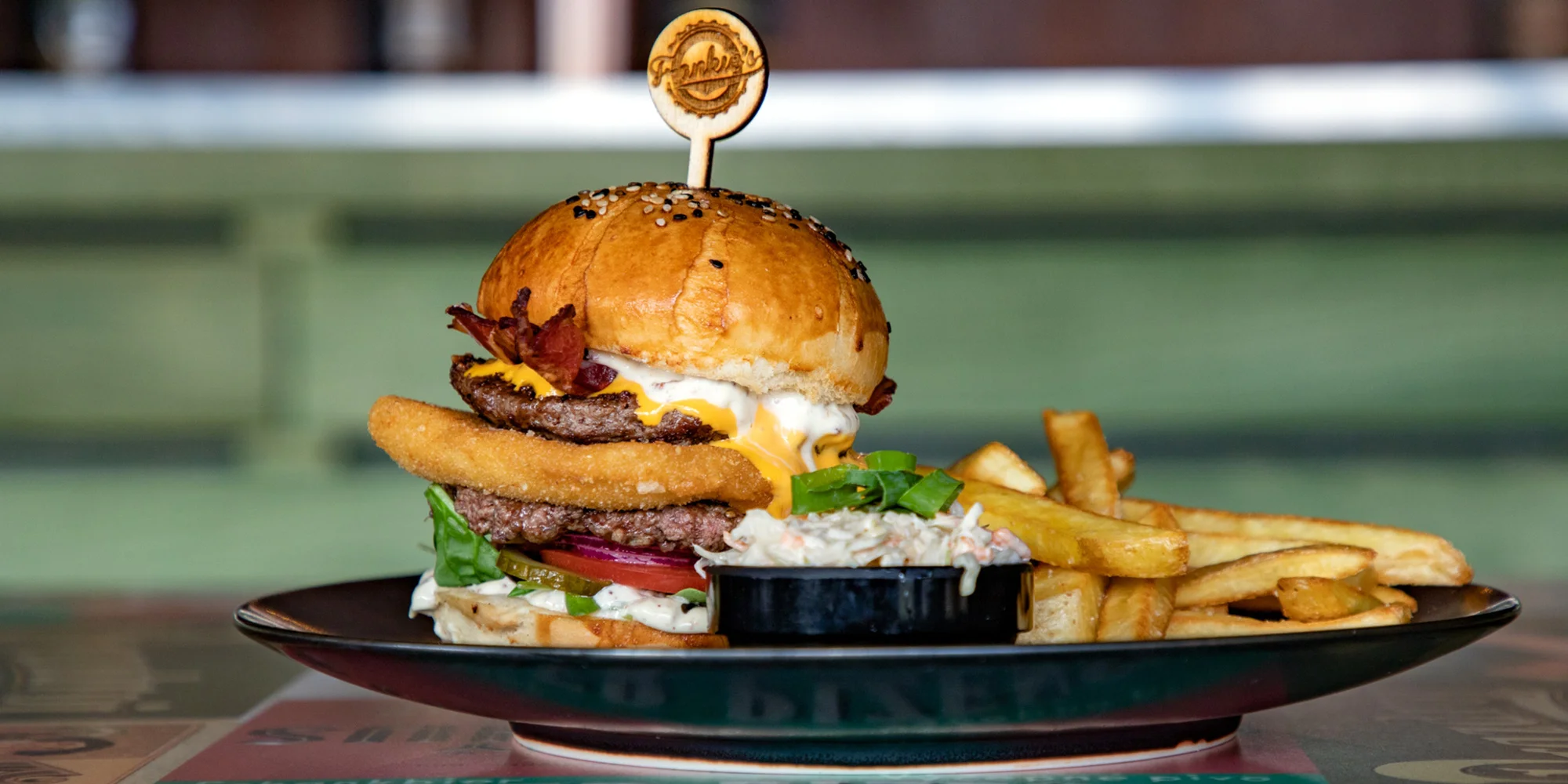 Cítíte tu vůni? To už pro vás v moderní restauraci Frankie's připravují Royal Double Cheese Burger. V domácí sezamové bulce budou napěchovány dva plátky hovězího masa, plátek smažené goudy, domácí majonéza, zelenina a křupavá slanina. Mňam! A nezapomeňte někoho vzít s sebou, vždyť ve dvou se to lépe táhne!