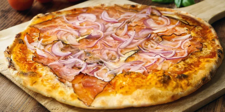 - slaninová (sugo, slanina, kukuřice, červená cibule, mozzarela)