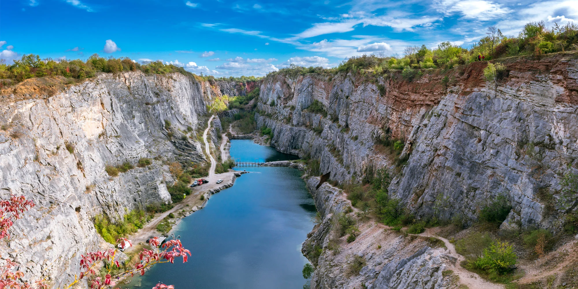 - Výlet zakončíte krátkou zastávkou na vyhlídce nad vápencovým lomem Velká Amerika v chráněné krajinné oblasti Český kras. Tento lom je největší ze skupiny zdejších lomů a vytváří impozantní kaňon.