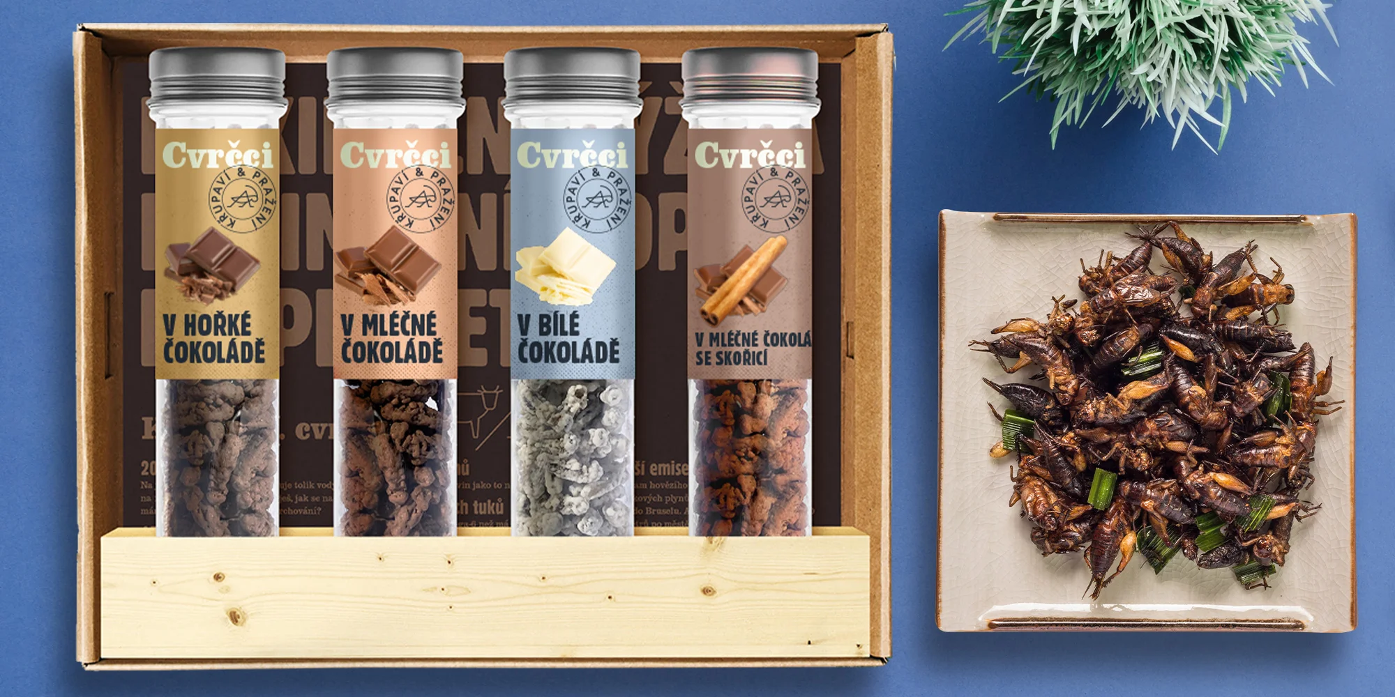 Pražení cvrčci jsou totiž fantasticky křupaví, oproti chipsům se navíc nesmaží na nezdravém oleji, naopak jsou plní proteinů a dalších minerálů. Tahle limitovaná edice zahrnuje hned čtyři zkumavky, v každé jsou obalení v jiné čokoládě – hořké, mléčné, bílé a mléčné se skořicí.