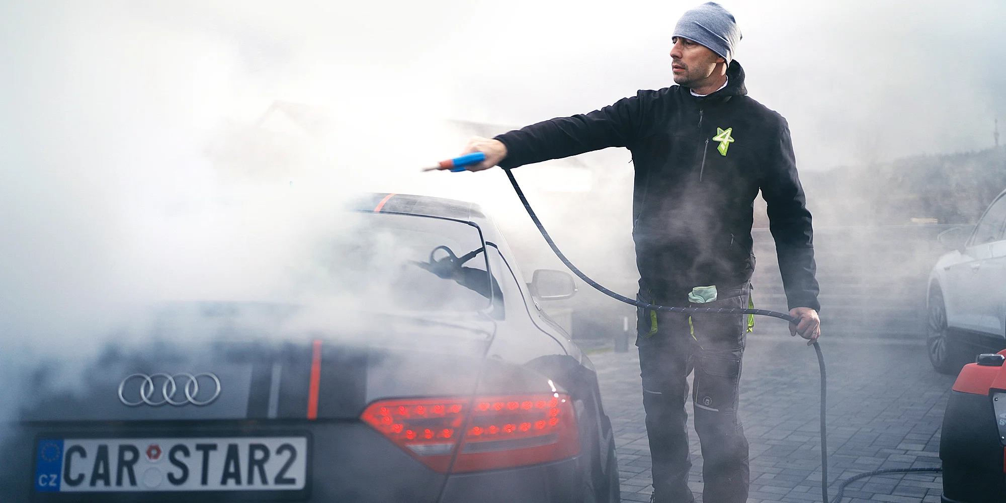 Parní mytíDíky své účinnosti a sterilizační schopnosti odstraní pára špínu z těžko dostupných míst, mastnotu, lepidla, žvýkačky, organické nečistoty a zároveň zbaví auto bakterií a zápachu. Navíc bude povrch po vyčištění ihned suchý. |