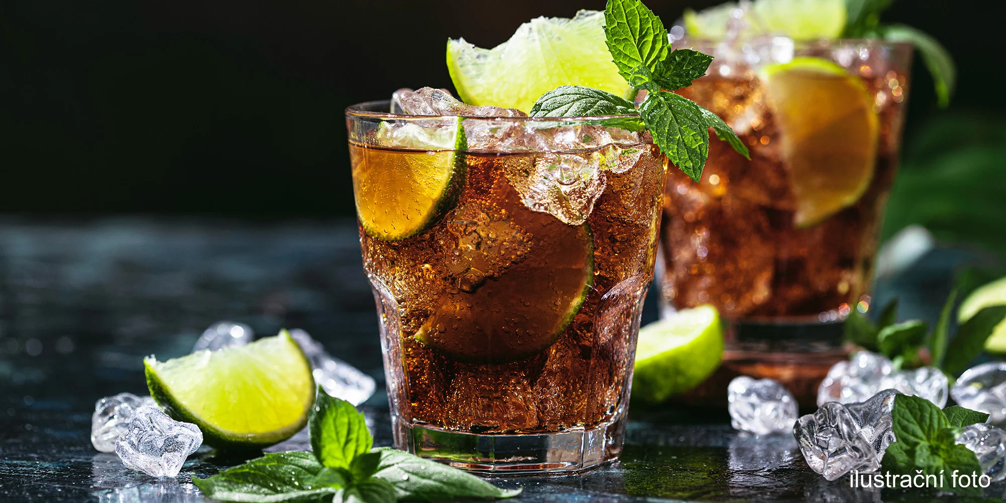 - Cuba libre (Havana Club, Coca-Cola, limetka, kostky ledu, brčko)