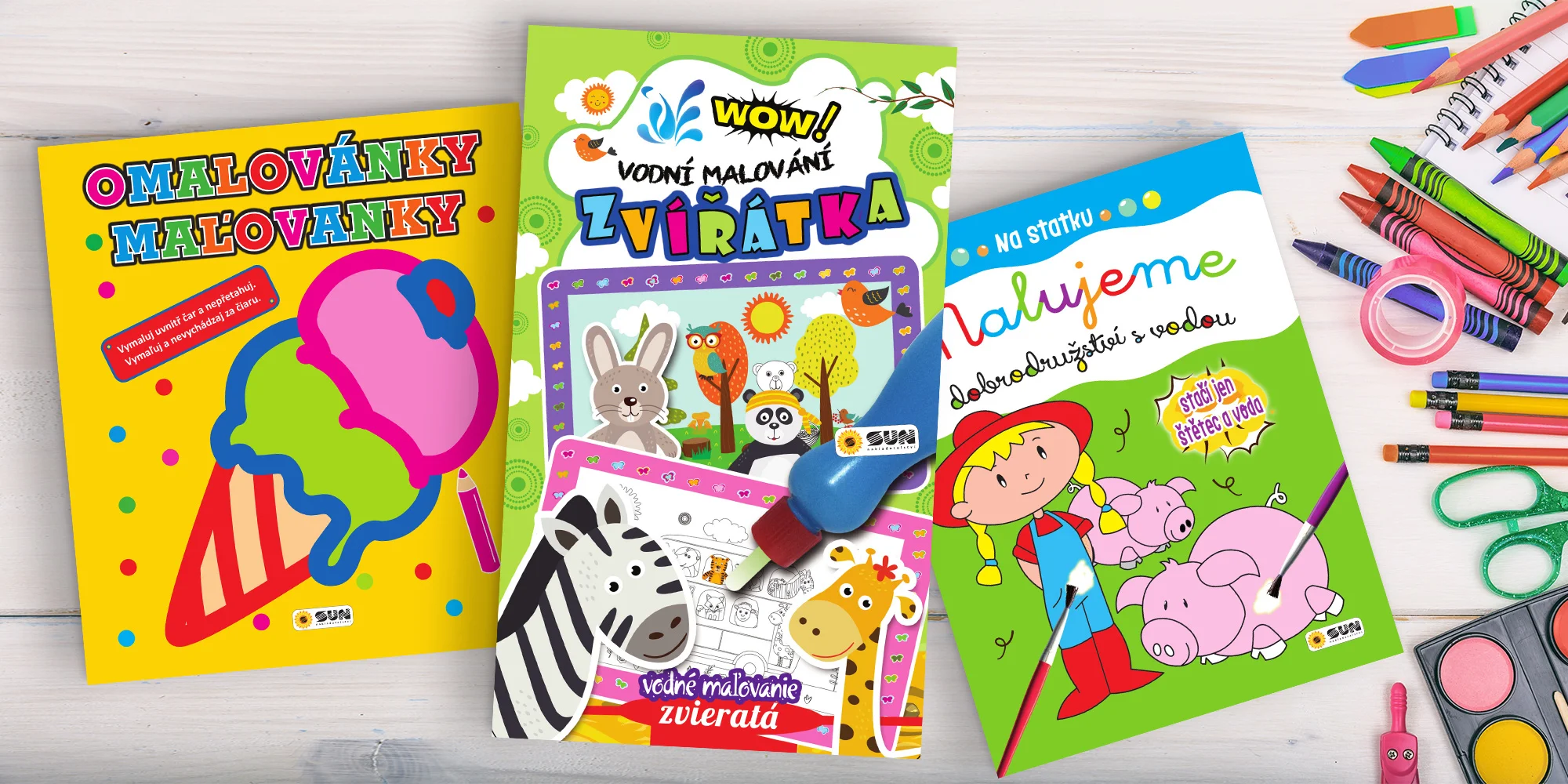 Pořiďte dětem domů pořádnou zábavu! V nabídce jsou vodní omalovánky Dobrodružství s vodou, které zvládnou vybarvit i ti nejmenší. Stačí totiž jen štětec a voda, aby se na obrázku objevily krásné zářivé barvy. Vodní malování WOW je na stejném principu – součástí je štětec, který naplníte vodou, vybarvíte, obrázek bude barevný a po uschnutí barvy zmizí, takže klidně můžete začít znovu.