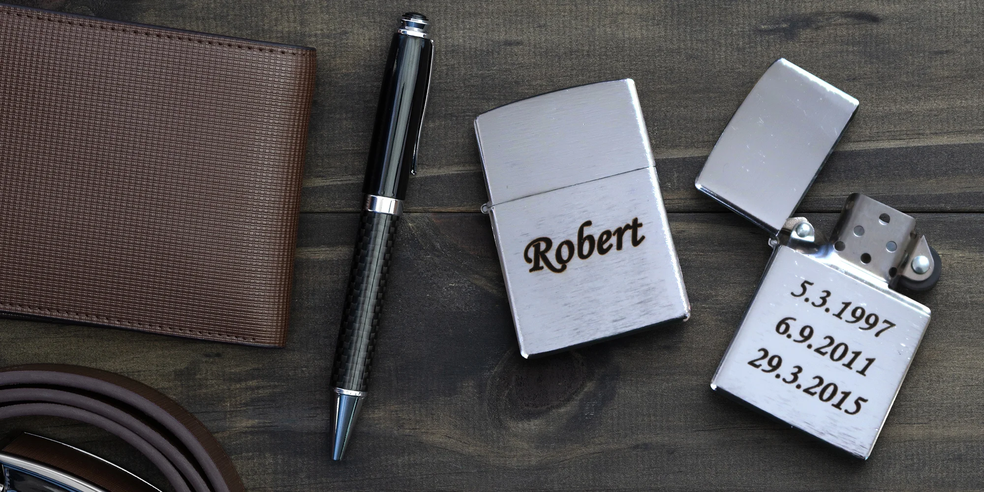 Udělejte mu radost benzinovým zapalovačem s osobním textem. Kovový benzínový zapalovač má stříbrnou barvu a broušený povrch, text je do zapalovače vygravírován a je tudíž nesmazatelný. Vybírat můžete z více než 10 stylů písma a je jen na vás, co si do zapalovače necháte vyrýt. Po vygravírování je gravura černá.