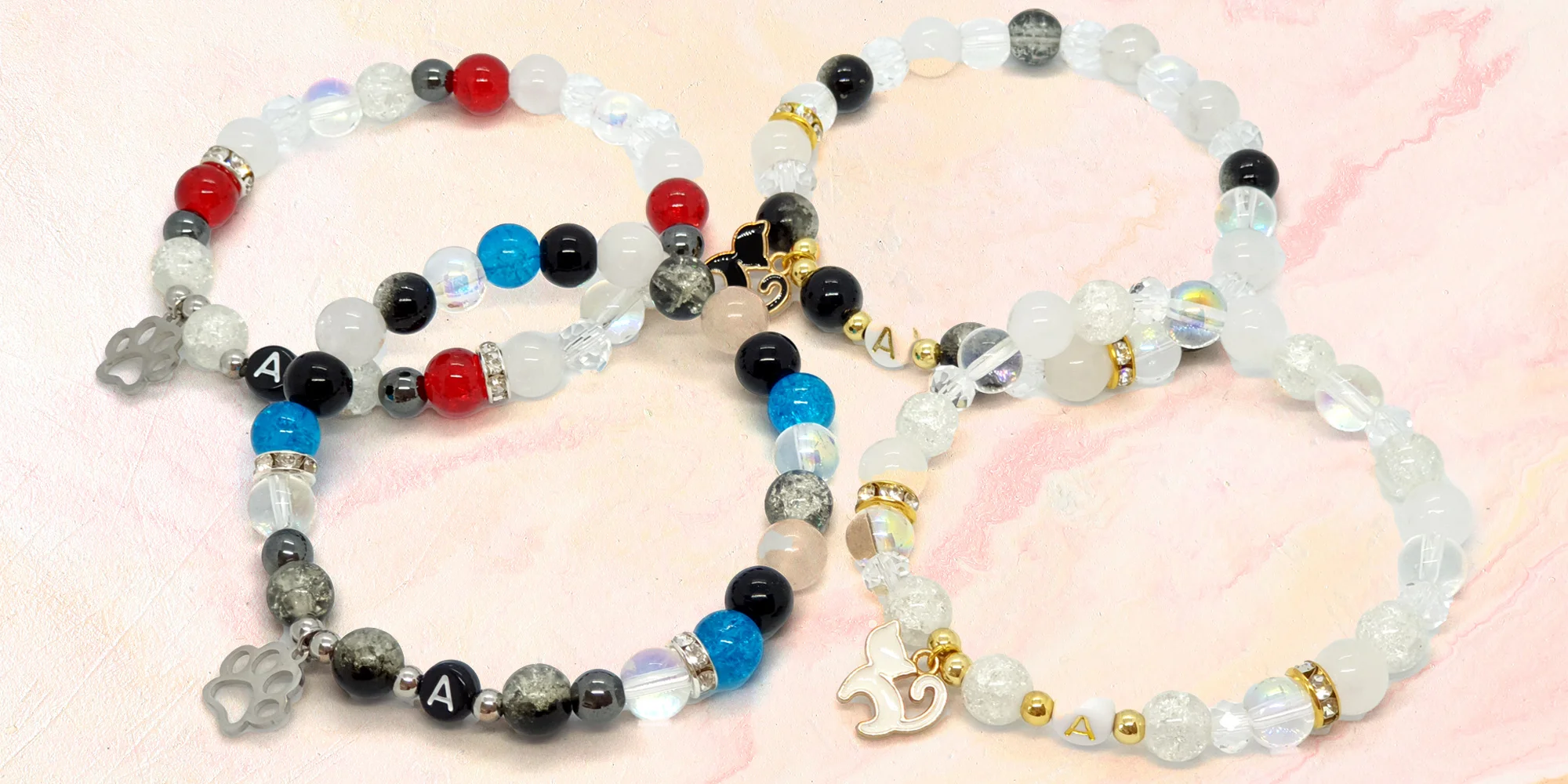 Patříte mezi milovníky koček nebo pejsků a třeba máte i jednoho nebo dva čtyřnohé kamarády doma? Pak by se vám mohl líbit náramek s kočičkou nebo psí tlapkou a také iniciálou jména. Náramky jsou vyrobené z minerálů a broušených i mačkaných korálků. A aby toho nebylo málo, k objednávce náramku dostanete malý dárek z oblasti krásy.