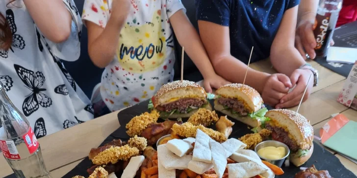 Připraví vám tu hodování pro dva nebo čtyři strávníky, přičemž na každého čeká přes půl kila dobrot. Na stůl vám přistanou kuřecí křídýlka, vepřová žebra, burgery s hovězím masem, uzené stripsy i hranolky na zakousnutí. Samozřejmě i s několika dipy, ať máte v čem namáčet. Nechte si chutnat!