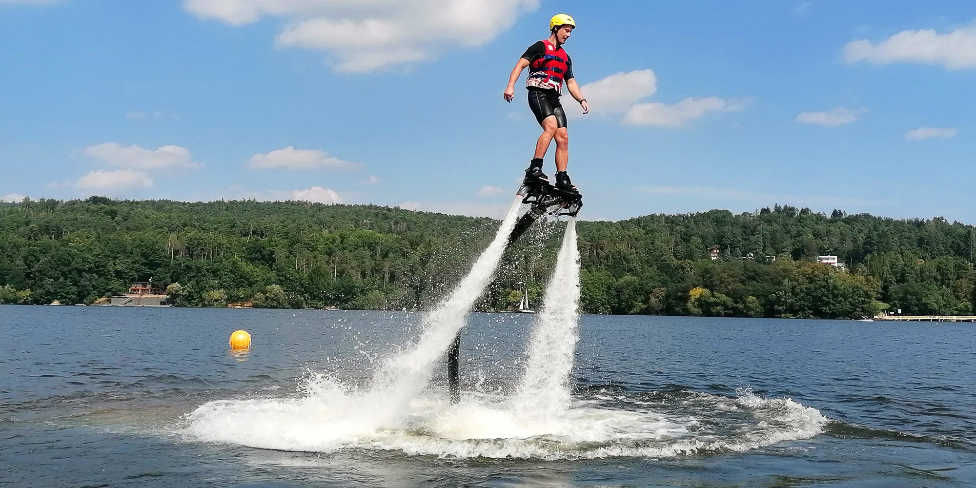 Vyzkoušejte novou adrenalinovou zábavu – tryskový let na Flyboardu. Tohle speciální prkno vás pomocí vodních trysek vyzdvihne nad hladinu vody a její okolí se před vámi otevře v naprosto jedinečném úhlu. Budete 10–30 min. létat na tryskách a dostat se můžete až do výšky 10 m!