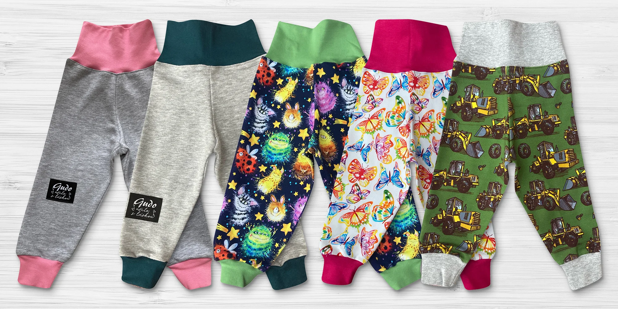 Oblečte svým nejmenším tepláčky Gudo, které jsou z 98 % bavlna a namísto gumy mají pouze široký pas, takže miminka nikde netlačí. V nabídce jsou modely se zvířátky i bagry. Můžou v nich usnout v postýlce, batolit se doma i venku a pořád jim bude hej! V nabídce jsou velikosti 50–98, tedy od narození do cca 3 let. Ušité jsou malou českou rodinnou firmou.