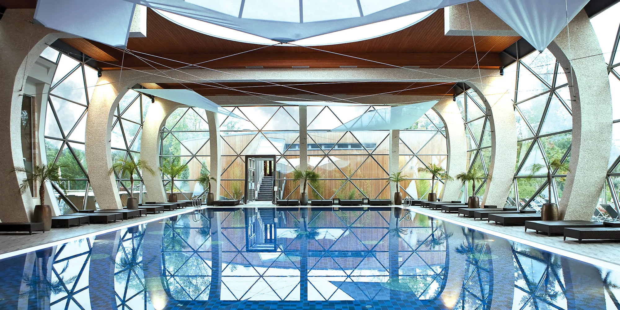 - Vnitřní bazény: plavecký (25×12 m), zážitkový, termální a dětský bazén, bazén s divokou vodou a Kneippova lázeň