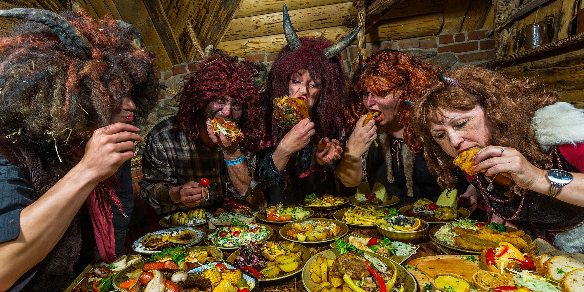Lucifer se rozhodl otevřít brány pekelného šenku pro obyčejné smrtelníky, aby ochutnali po čertech dobré speciality. Po vší té děsivé zábavě vám vyhládne, připravte se na netradiční stolování – vidle a pekáčky plné nejpekelnějších dobrot. A na čem si pošmáknete? Těšte se například na kuřecí a vepřové řízečky, vepřová žebra, hovězí guláš, bůček, uzené, pikantní křidélka, kuřecí paličky, ale také sýrové mísy, ovoce a zeleninu a spoustu dalších dobrot. To vše v libovolném množství. Nápoje se hradí zvlášť.