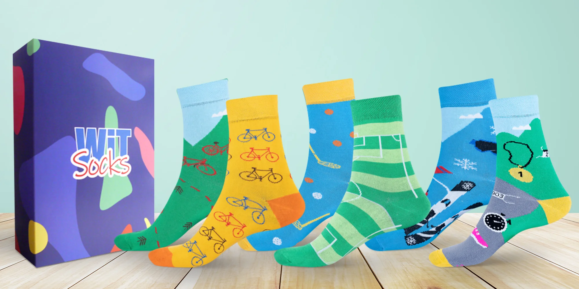 Wit socks potěší každého sportovního fanouška – v nabídce najdete ponožky s 31 druhy sportovních motivů ve velikosti pro větší děti, dámy i pány, sáhnout můžete po vysokém či nízkém provedení. Nositele jistě potěší, že jsou vyrobené v ČR a že v nich je 80 % bavlny. Ponožky navíc obdržíte v dárkové krabičce, takže je rovnou můžete někomu věnovat!
