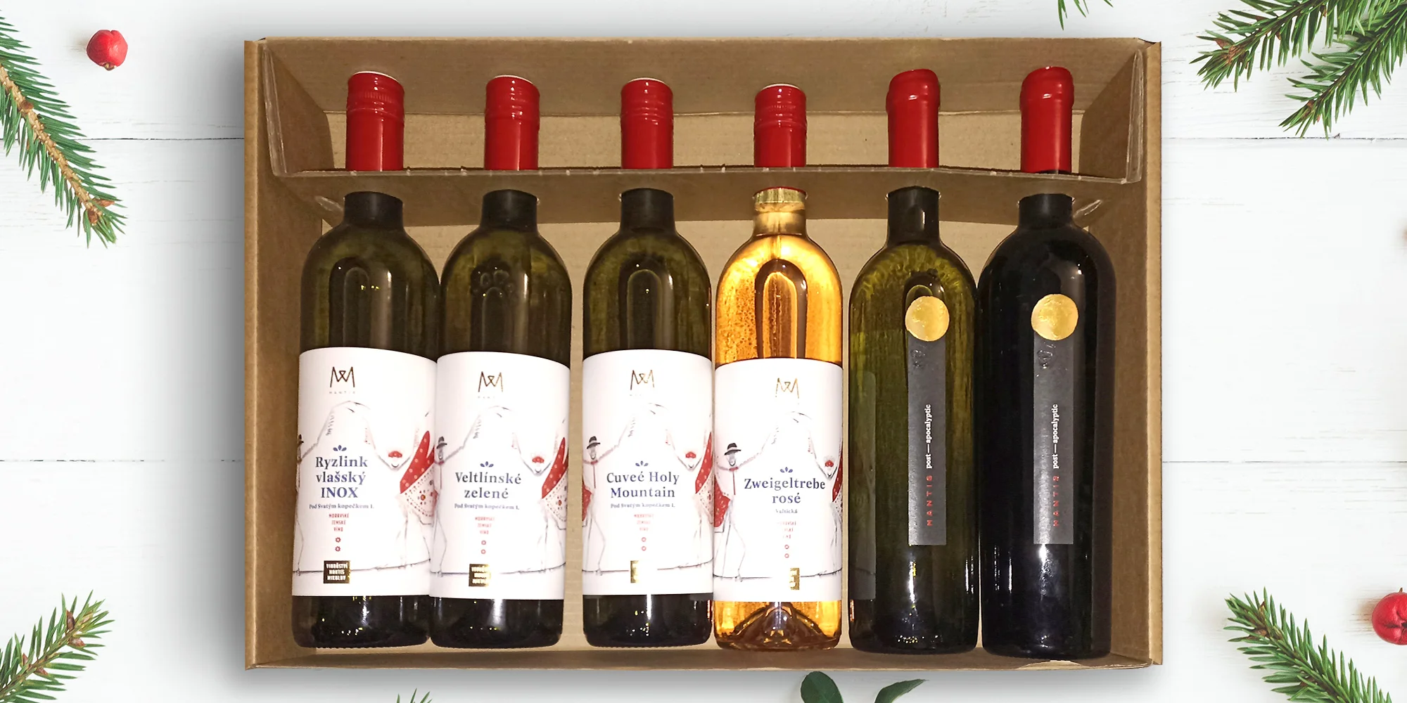 Dárkový set 6 vín z vinařství Mantis Mikulov v dárkové krabici