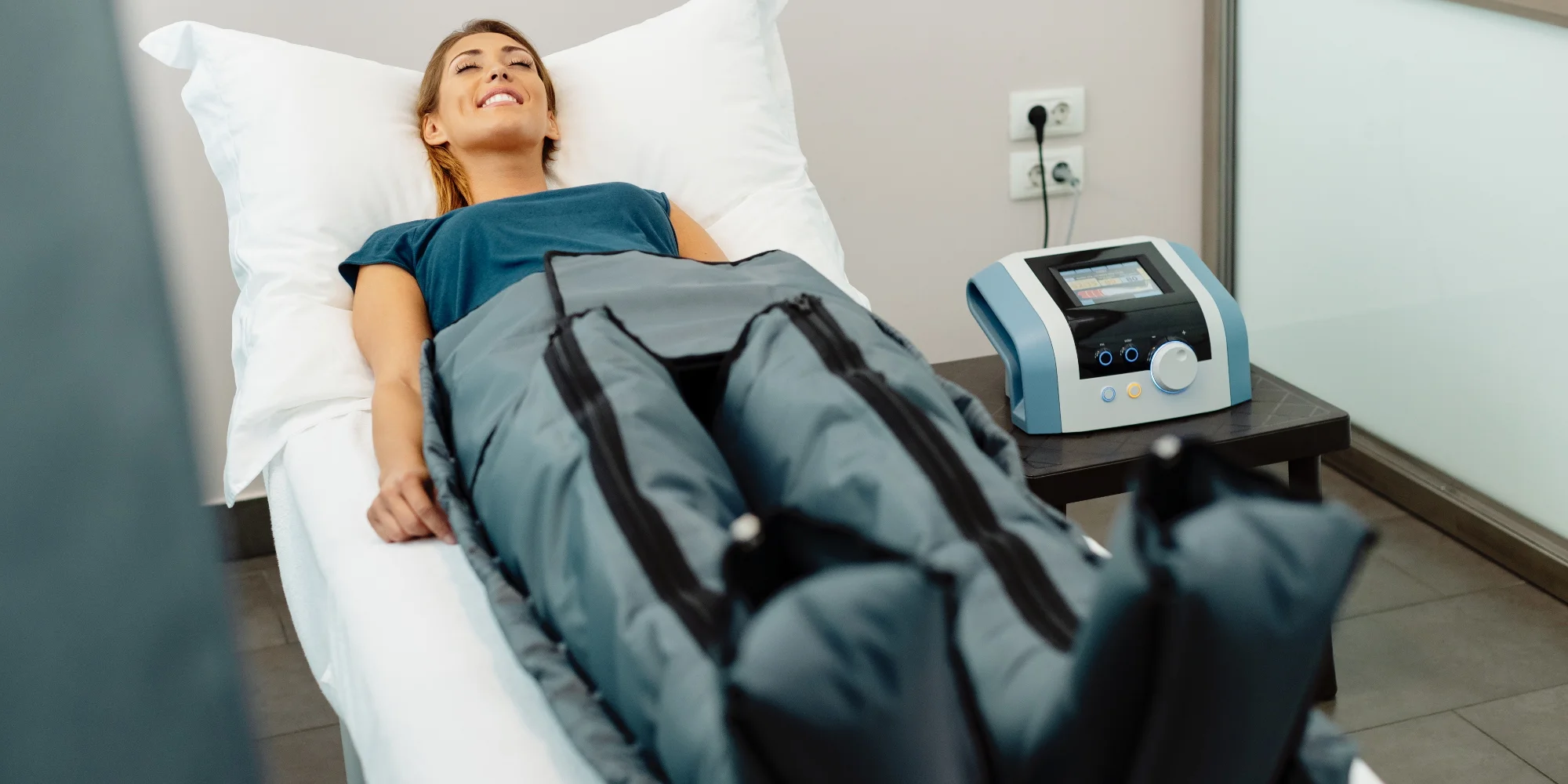 Při přístrojové lymfodrenáži dochází k přerušované kompresi končetin a vytváření tlakové vlny. Speciální návleky se v pravidelných intervalech naplňují a vyfukují a jemným tlakem masírují spodní i horní část těla a dochází i k aktivizaci lymfatického systému díky ručnímu uvolnění horních lymfatických cest. Je tak stimulován lymfatický a žilní systém, vaše tělo se krásně pročistí.
